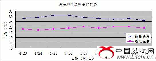 2011年4月22日,深圳试验站团队成员和惠东示范县团队成员黄金瑜、刘伟峰等人对惠东示范县的荔枝蛀蒂虫发育进度做了详细的田间调查试验,根据调查结果做出第二代蛀蒂虫发生期及发生量的预测,并针对当前荔枝的物候状态做出相应的防治措施。