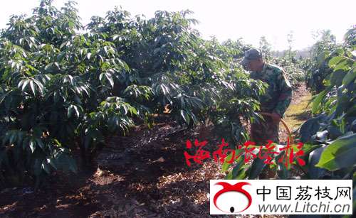近日,东路农场职工抢着给荔枝施肥,以便赶在开春前完成荔枝促花工作。