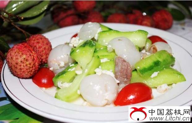 7)最后倒入小番茄和荔枝炒匀即可盛起食用