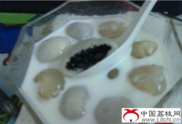 荔枝、黑芝麻、旺旺牛奶、蜂蜜、糯米粉
