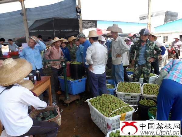5月15日始,红明农场荔枝进入销售高峰期,全国各地收购商有近60家进驻红明农场进行收购业务。据初步统计,当日收购荔枝出岛量约264万斤。收购最高价5.5元/斤,最低价3.8元/斤,平均价4.3元/斤。自荔枝销售一周以来,平均每天出岛运往全国各地销售的车辆达到60辆,未来10天收购量仍会继续飚升,全场范围一批繁忙景象。