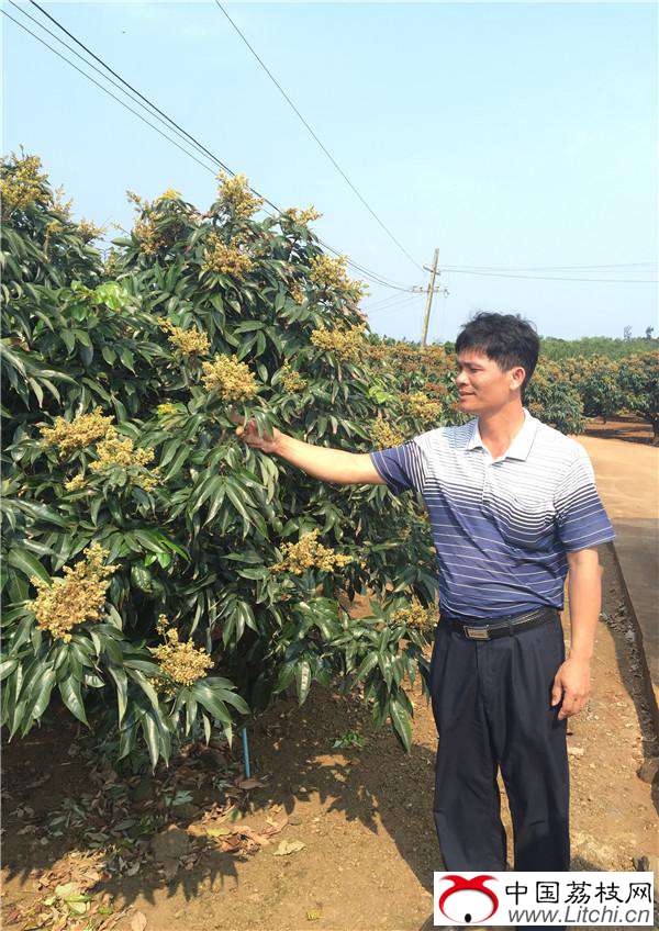 办内村循环农业示范点负责人周永岛向记者介绍荔枝生长情况