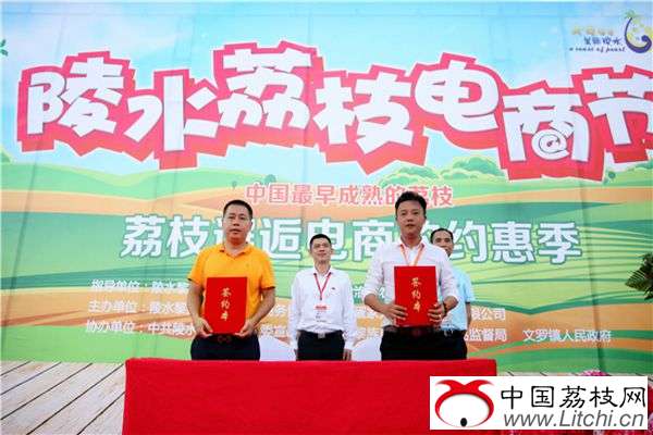 活动现场来自省内外客商与陵水荔枝种植户、电商企业签订销售订单
