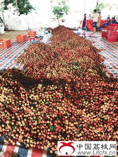 5月17日,正值丰收时节的生态荔枝被采摘下来,堆成了小山。本版照片由陈学军提供