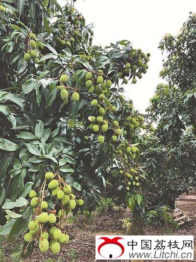 記者隨即沿著果場察看,果然如上所言,挂果多的基本上是妃子笑品種,糯米?和桂味則挂果寥寥,有的果樹是“零”挂果,令人遺憾!